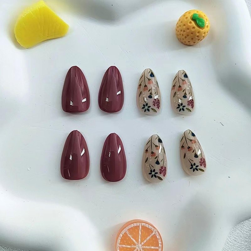 - Full cover acrylic nails, suitable length, make your glue on nails slim and have a very realistic appearance. Press on nails in water for 10-15 minutes, gently peel off at the edge, and will not cause damage to your natural nails