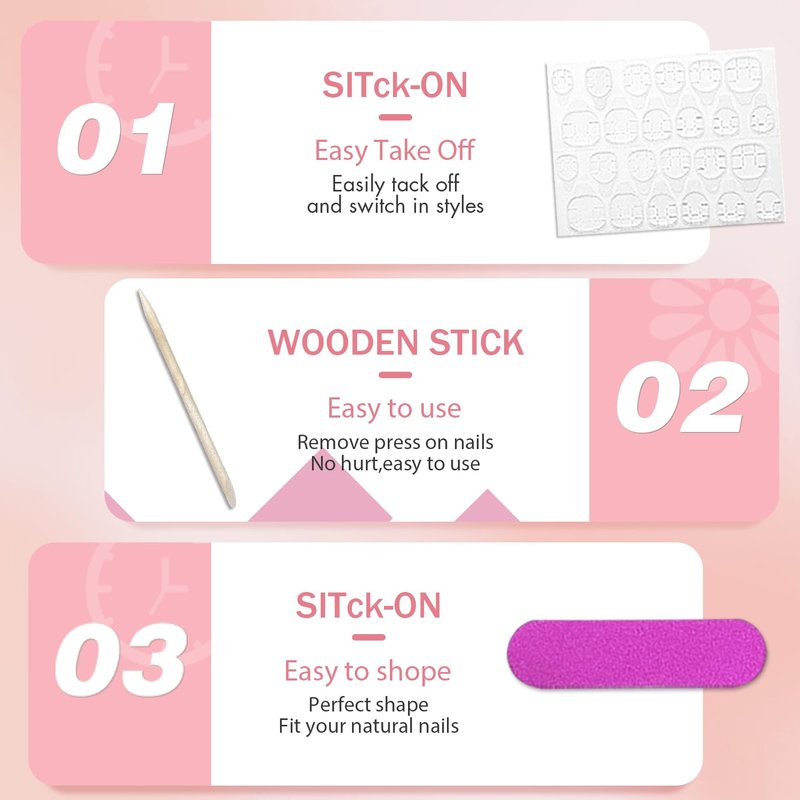 2.Please note that the nail glue is not included.If you want it last for a longer time,please use nail glue instead of the nail stickers.