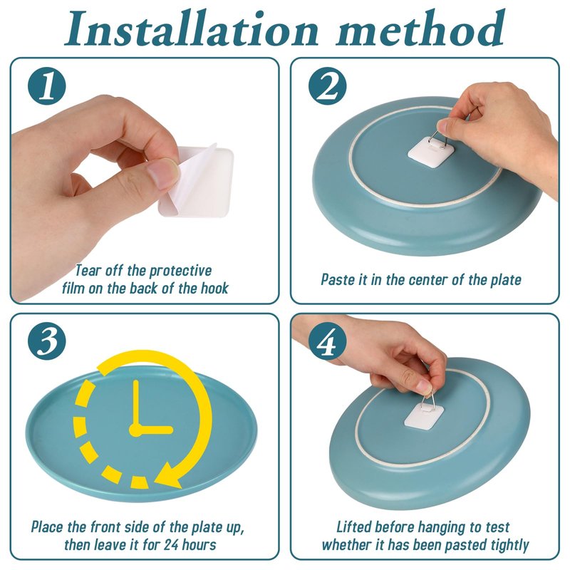 - Invisible Plate Hangers: Show your cherished decor pieces with our adhesive wall plate hangers. Get a seamless and beautiful display as your plates flat hang against the wall.