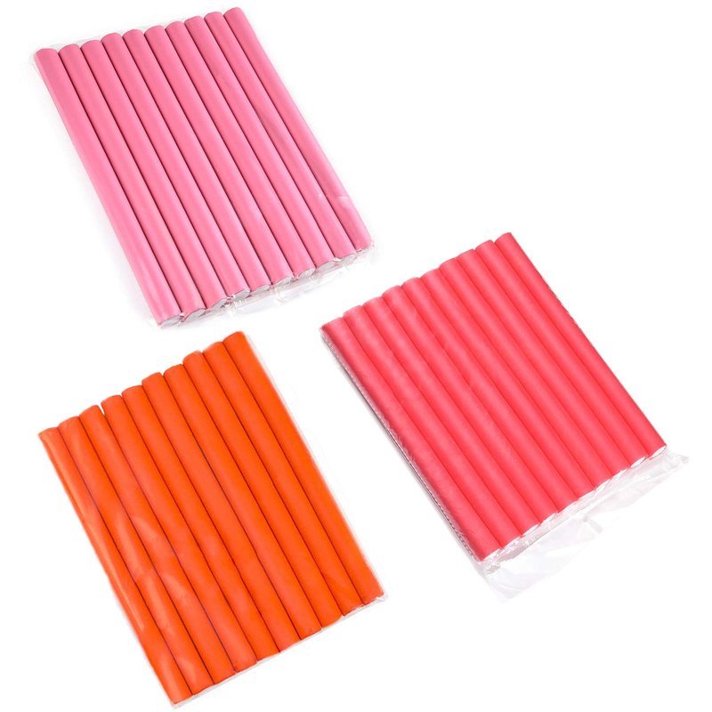- 5) Flexible Curling Rods: 30pcs Flexible Rods for Long Hair, Orange, Pink and Red Colors, Natural Curl to Look.