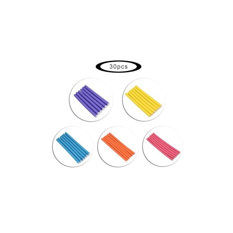30 Pieces Flexi Curling Rods No Heat Hair Curlers Rod 9.45 Inch Hair Curlers for Medium and Long Hair (5 Colors)