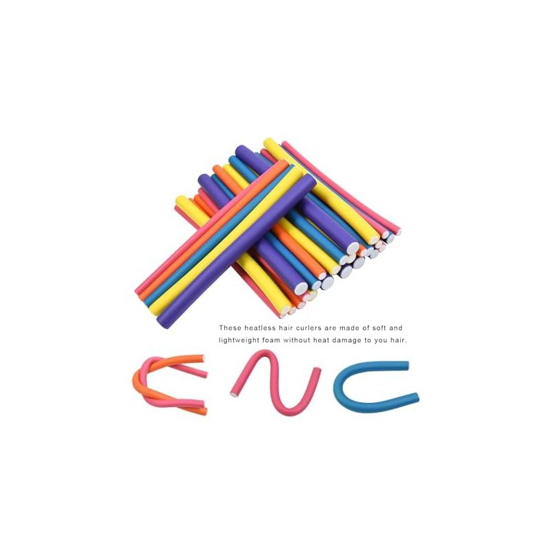 Color: Pink, Orange, Blue, Yellow, Purple Size: 10mm 12mm 14mm 16mm 18mm These heatless hair curlers are made of soft and lightweight foam without heat damage to you hair Easy to use just roll the hair and clip in on tightly even when you sleeping it can be worn without making you feel uncomfortable We are have 5 different colors and size hair curlers you according to you needs to choice different curls rods to create your own hairstyle, suitable for short, medium and long hair