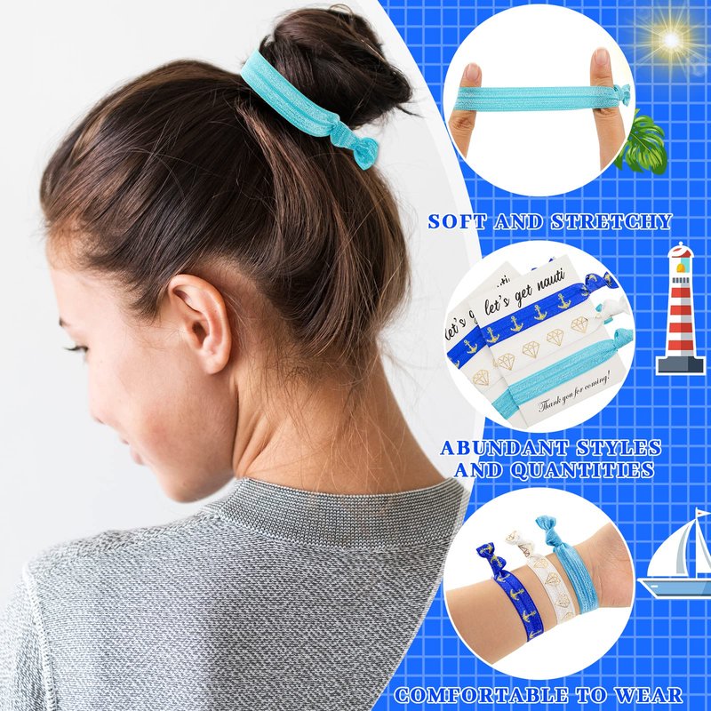 30 Pieces Nautical Hair Ties - Last Sail Before The Veil Party Favors, 3 Styles for Summer Yacht Theme Bachelorette Gift Supplies