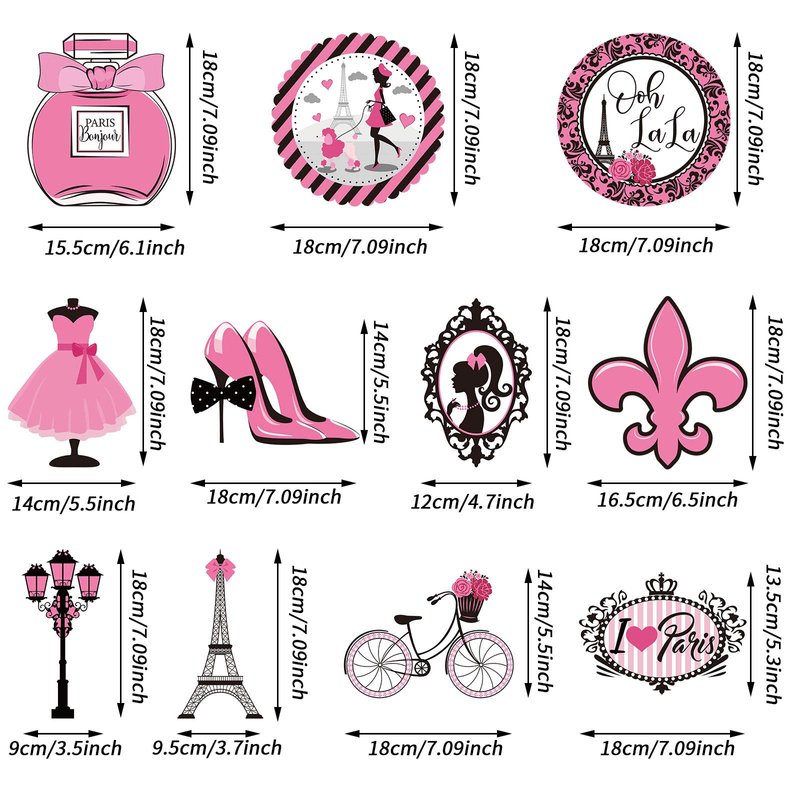 - Suitable size: the size of each Paris Party cutout card is approx. 18 x 18 cm/ 7.09 x 7.09 inch; Each swirl can extend to approx. 30 - 38 inches in length; You can hang these Paris party swirls anywhere as you like with the hook on the top, enough to catch the attention of friends and guests