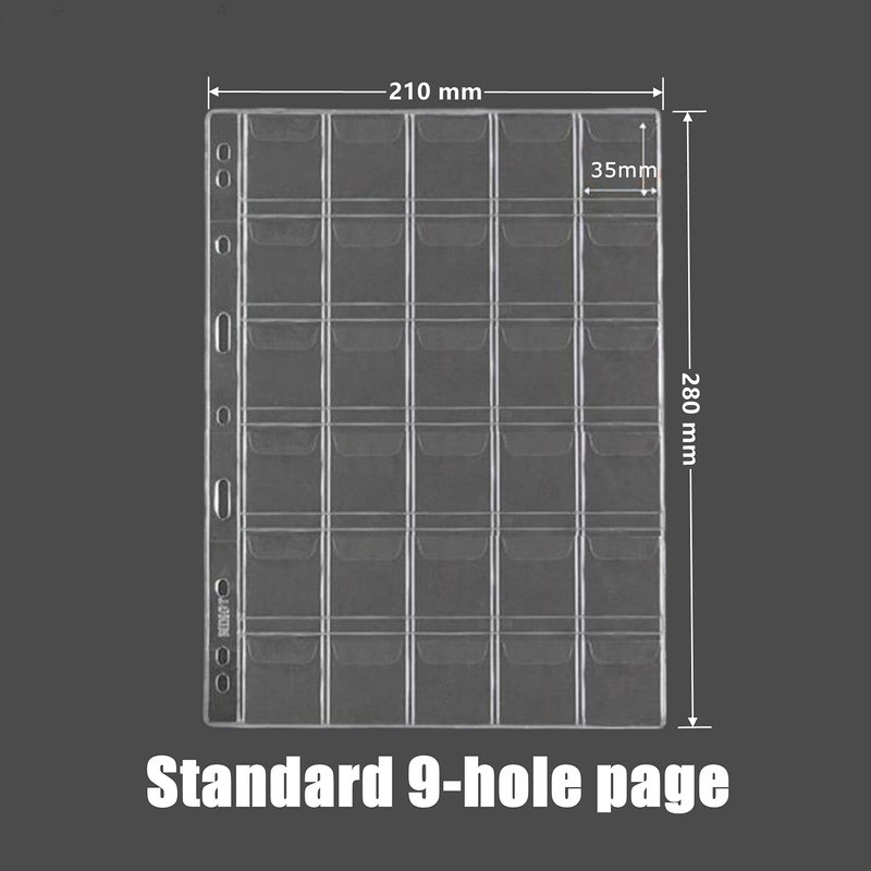 - International Standard : 9-hole coin page, fit most binders such as European 4 ring ,US 3 ring etc.