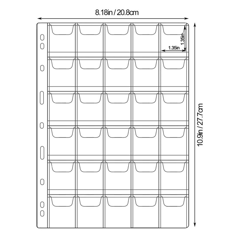 - Product Size: Entire size: 10.90'' x 8.18''/27.7cm x 20.8cm. Pocket size - 30 pocket (1.35x1.35 inch/3.43 x 3.43 cm each pocket).