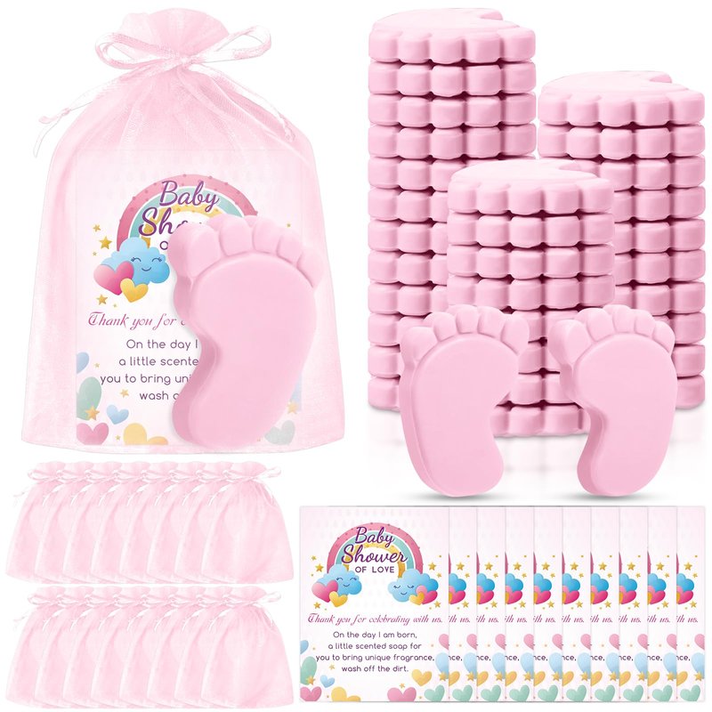 30 Sets Baby Shower Favors Refreshing Foot Soap Perfect Baby Shower Favors for Guests, Gifts, and Prizes with Organza Bags Thanks Cards (Pink)