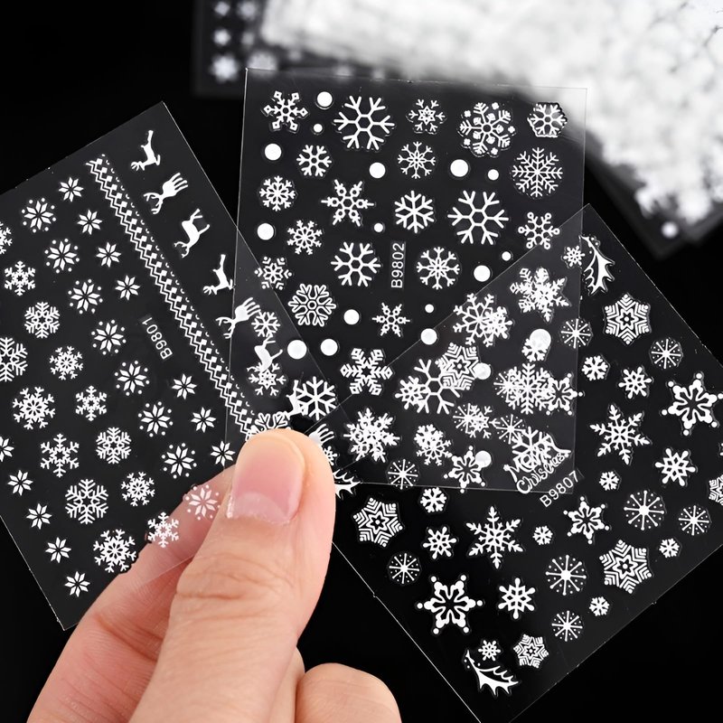 - Snowflake Nail Art Stickers: You will get 30 styles white nail decals in one set of different snowmen Santa Claus and elk shapes nail stickers, satisfy all your love for beautiful nails, a variety of elements for you to choose from to DIY your own nail art designs.