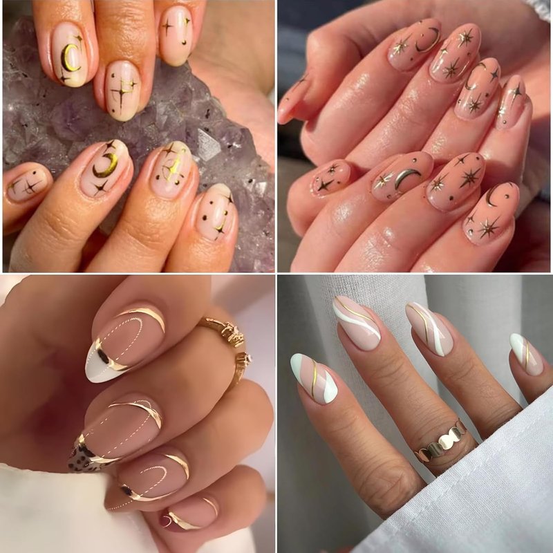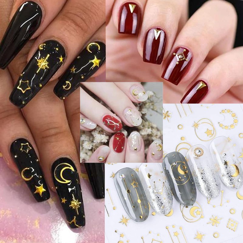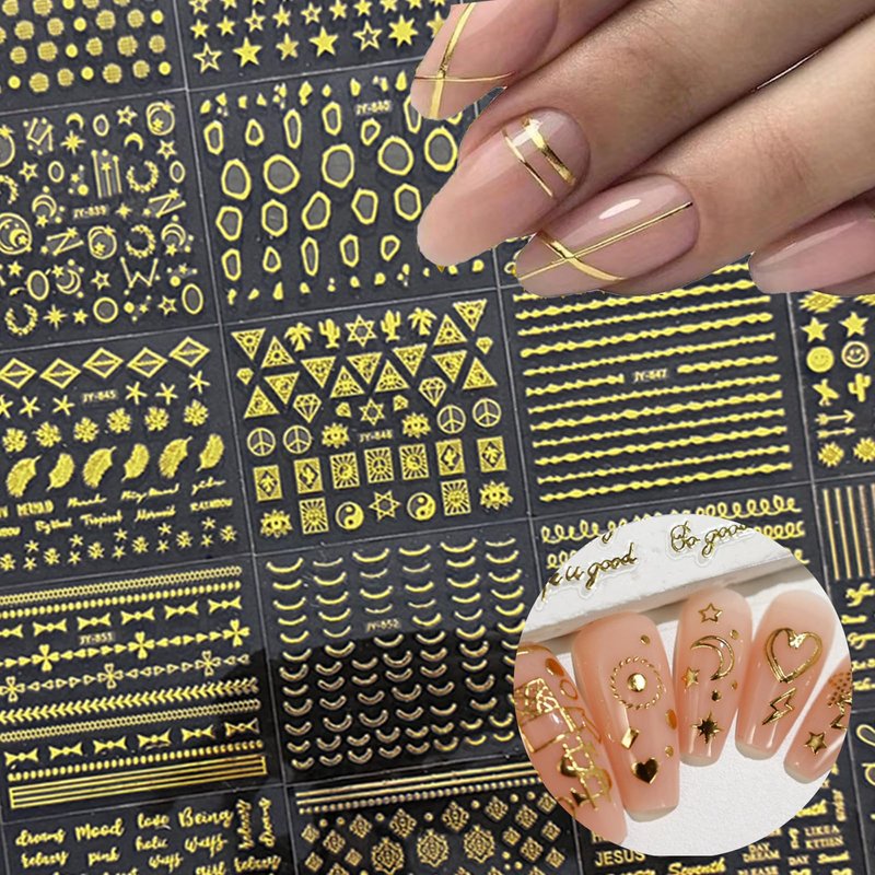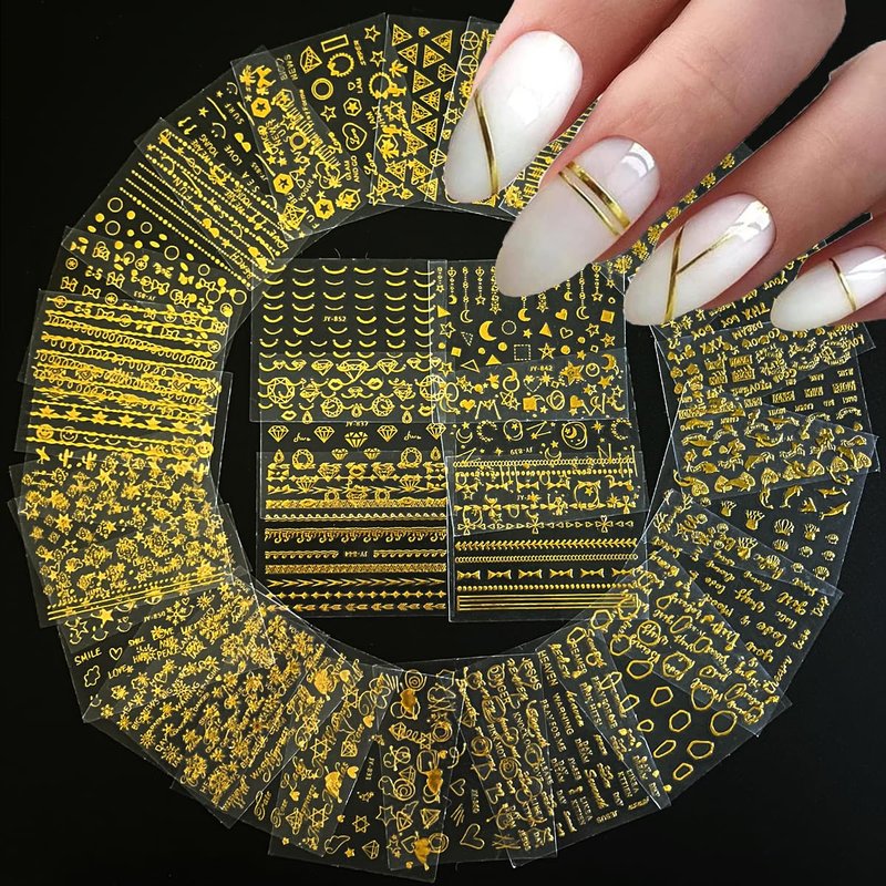 - 【Usage Safety】: Gold nails decals Made of high quality materials, non-toxic, not limited to any skin, and safe to use. Well worked with gel nail, acrylic nail, toenails,natural nail, false nail, nail tips and more.