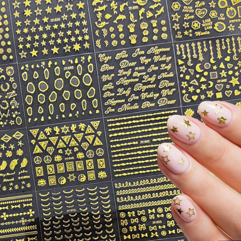 Metallic Gold Nail Art Stickers Decals 3D Gold Nail Stickers Self-Adhesive Nail Art Manicure Decoration Accessories