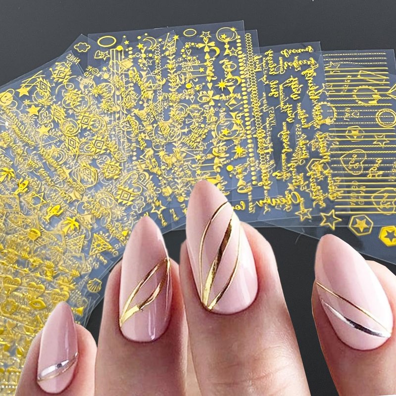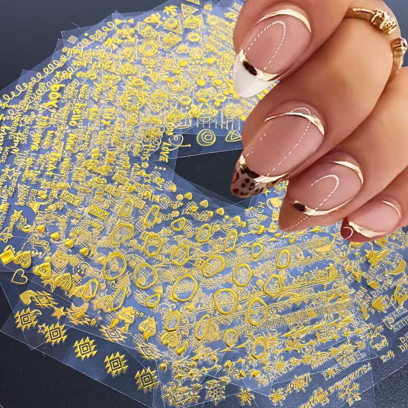 - 【Easy to use】The gold nail art decals decoration, just peel it from the paper and stick it on you nails. Easy to use, Ideal for natural or acrylic nails. The simple operation is perfect for DIY at home, so you can get a unique artistic manicure anytime and anywhere without going to the nail salon.