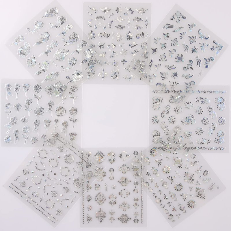 - Style: Silver Flower Nail Stickers