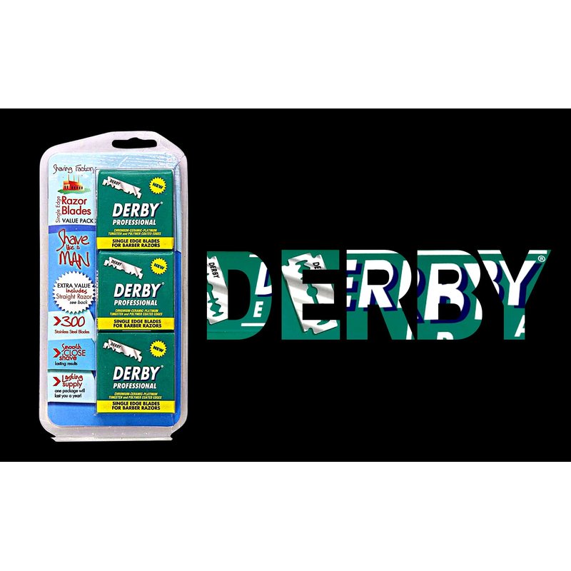 300 Derby Professional Single Edge Razor Blades comes with free Shaving Factory Straight Razor