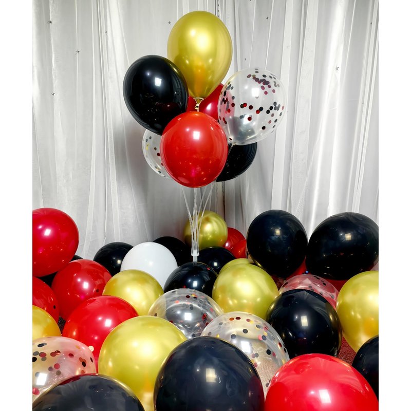 - 12 inch Red Black Gold Balloons: Our red black gold balloons are made of latex, durable and long-lasting. The balloons are 12 inches in size, for various party decorations.