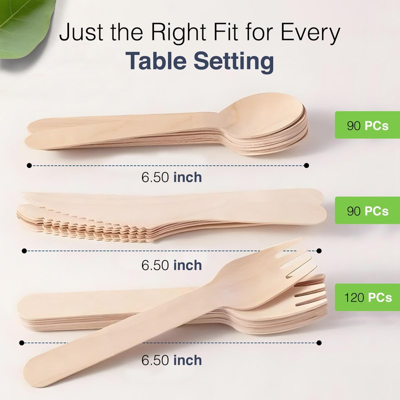 - 𝟏𝟎𝟎% 𝐁𝐢𝐨𝐝𝐞𝐠𝐫𝐚𝐝𝐚𝐛𝐥𝐞 𝐖𝐨𝐨𝐝 𝐂𝐮𝐭𝐥𝐞𝐫𝐲: Enhance your table setting with the natural aesthetics of our biodegradable cutlery, including wood forks, disposable knives, and compostable spoons, perfect for dishes like turkey, waffles, and pudding.