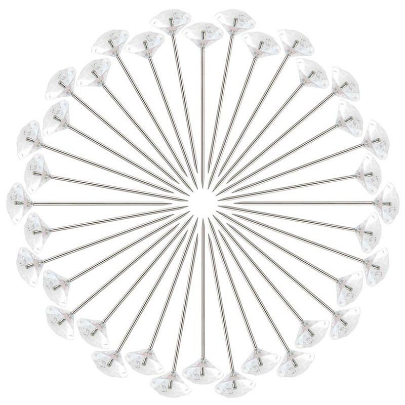 - Perfect Size Head Pins :Steel metal bits, plastic diamond: not easy to bend when decorating bridal bouquets.Metal bits length: metal bits is 1.85 inch; Diamond diameter: 8 mm; Total diamond head pins length: 2 inch.
