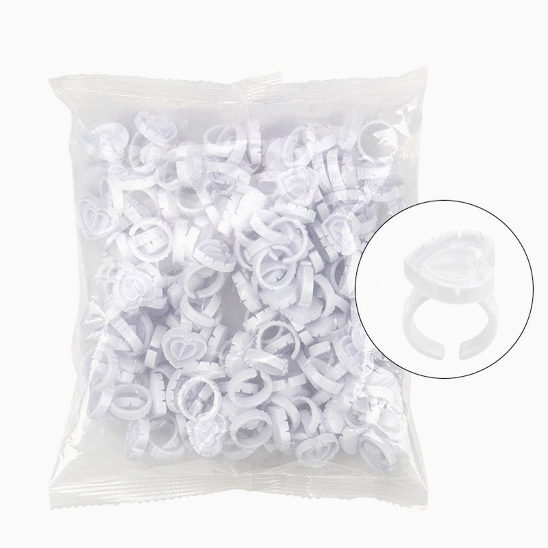 300 PCS Glue Rings for Eyelash Extension,Heart Glue Rings for Lash Eyelash Extension Supplies, Lash Glue Rings Smart Glue Cups Eyelash Glue Holder, Blossom Glue Ring Fan Fanning Glue Cups, White