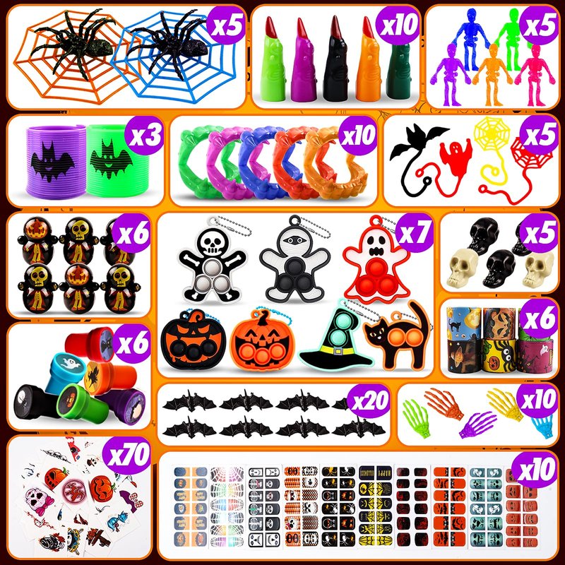 Introducing our exciting Halloween Party Favors! Get ready for a celebration with this incredible assortment high-quality toys. Perfect for kids aged 8-12, these Halloween Party Favors will add a dose of Halloween fun to any gathering. With assorted toys to choose from, this Halloween Toys Bulk set offers incredible value. It includes everything from Halloween keychain toys to small collectibles, ensuring that every trick or treater receives a special treat. These goodies are perfect for filling up trick or treat bags, treasure boxes, and pinatas. Order now and get ready for a spook-tacular Halloween! Get your Halloween Treats Non Candy, Halloween Party Favors, and Halloween Toys Bulk now. These Halloween goodie bag fillers are the ultimate trick or treat items. Don't forget to stock up on Halloween gifts and party favors for kids 8-12. They can also be used as Treasure box Toys, Pinata Stuffer, or prize stuffer for trick or treat bags and classroom prizes.