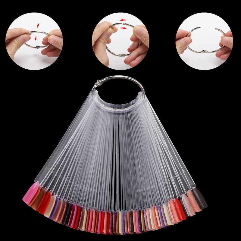 300 Pcs Nail Swatch Sticks with Number Stickers for Color Display, Clear Square-shaped Nail Polish Sample Swatches with Ring