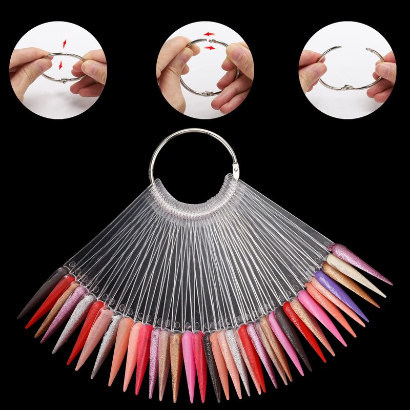 300 Pcs Nail Swatch Sticks with Ring, Stiletto Nail Polish Color Sample Sticks Display