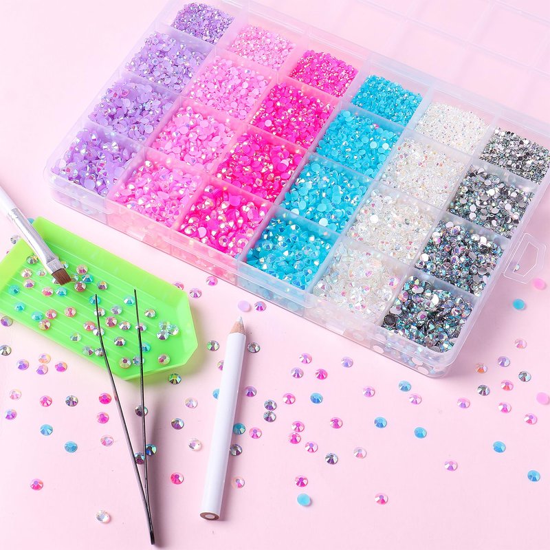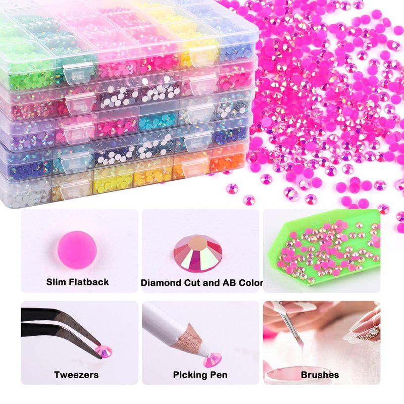 - Especially Shiny: The flatback rhinestones made from superior resin instead of glass. With advanced rhinestone cutting and AB coating tech, resin gems have better performance on bright color and sparkle for long time,Artificial Crystal Rhinestones Have Beautiful Shapes And Perfect Cutting Surfaces Each Rhinestone Is Shining 3D Nail Art Rhinestones. (Resin rhinestones can't be hot-fixed)