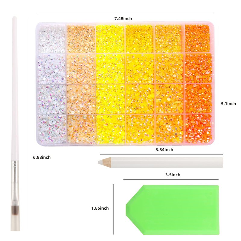 - 💎Yellow Rhinestones-Flatback rhinestones for crafts:Include 6 colors of AB Crystal Rhinestones. Each color has 4 sizes: 2mm 12000/ 3mm 9600pcs/ 4mm 5400pcs/ 5mm 3000pcs totally 30000pcs round shape rhinestones for craft. 1 wax pen, 1 Tweezer 1 crystal tray and 1 glue brush (Nail glue is not include). Sufficient quantity and rich colors allow you to decorate what you want to decorate as you like.
