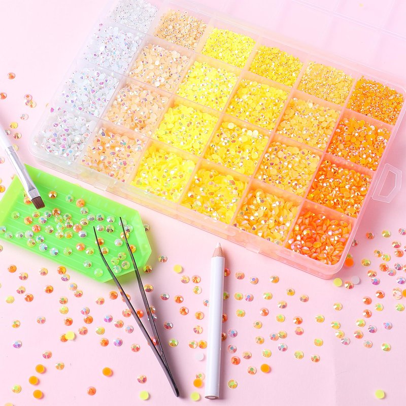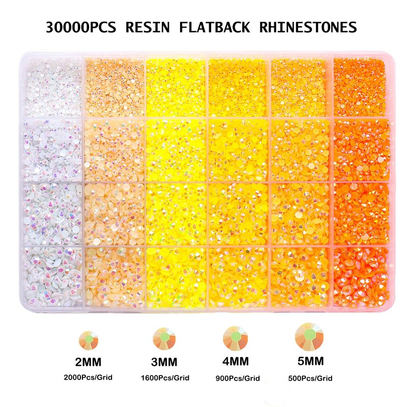 30000PCS Yellow AB Resin Flatback Rhinestones Kit, Jelly Resin Non-Hotfix Rhinestones for Crafts Makeup DIY Decoration Tumblers Nail Art 2mm, 3mm, 4mm, 5mm