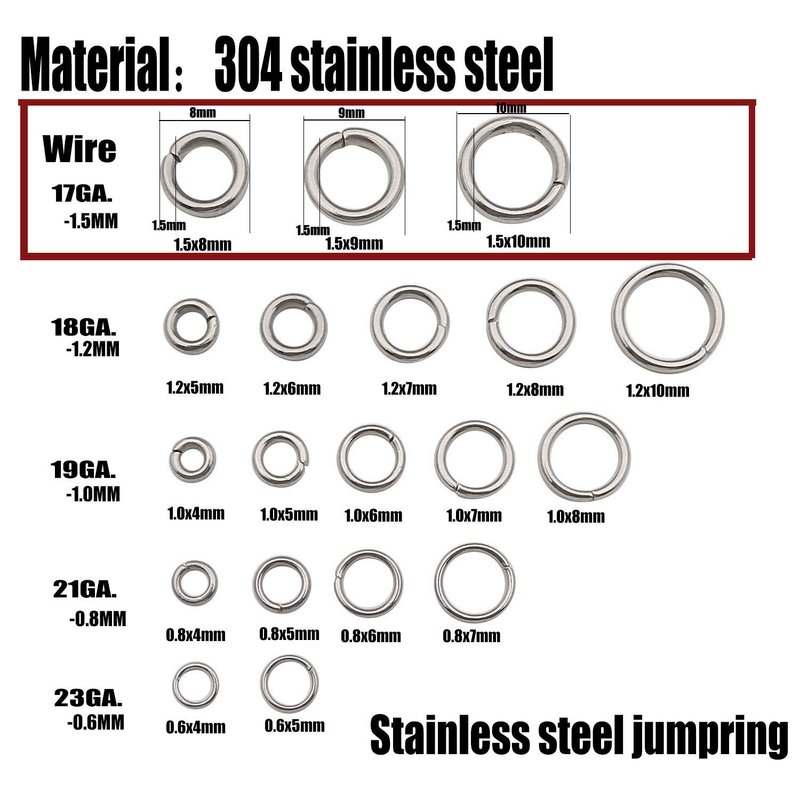 - Size: Don't imagine the size by yourself Choose the size you need before buying!!!! 300pcs mix 8mm 9mm 10mm Stainless steel Jumprings 3 kinds each 100pcs,thick 1.5mm Very Strong!!!