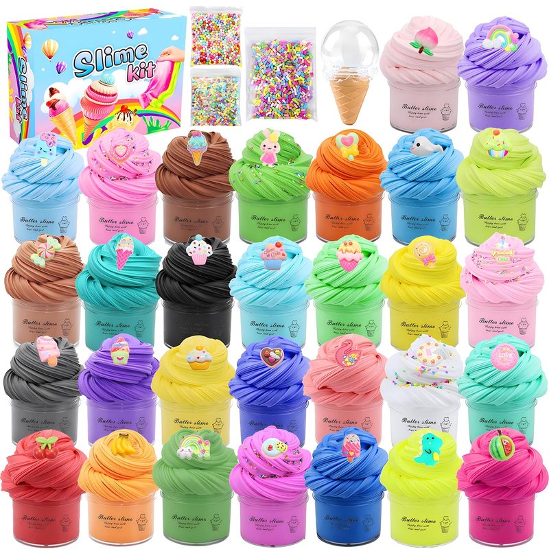 30Pack Butter Slime Kit with Cute Charms,Soft and Non-Sticky Stress Relief DIY Educational Toy Party Favors Christmas Birthday Gift for Kids Boys Girls