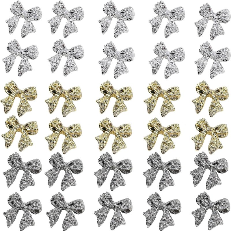 - Package Content: 30 pieces gold gray silver bow nail charms. It contains 3styles, 10 pieces of each style. Multiple choice, gives you different nail design every time.