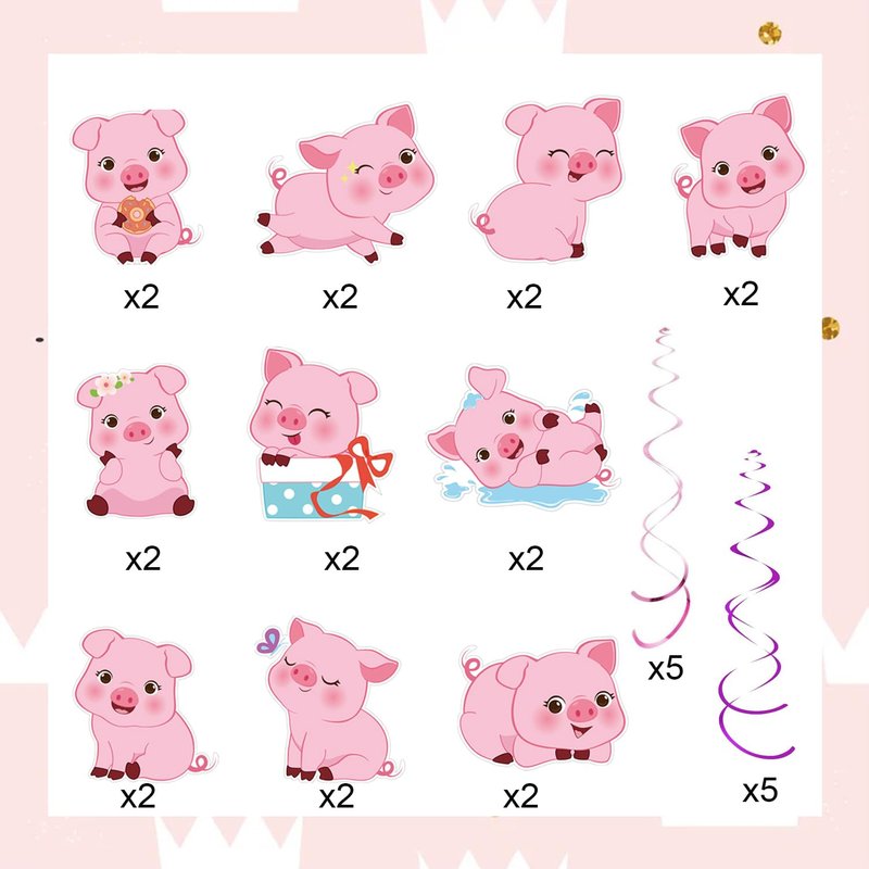 - 【Piggy Hanging Swirls】Package includes 20pcs double-printed cute pig cutouts and 10pcs assorted colors foil whirls decorations. The charming design and colors will definitely light up your birthday party.