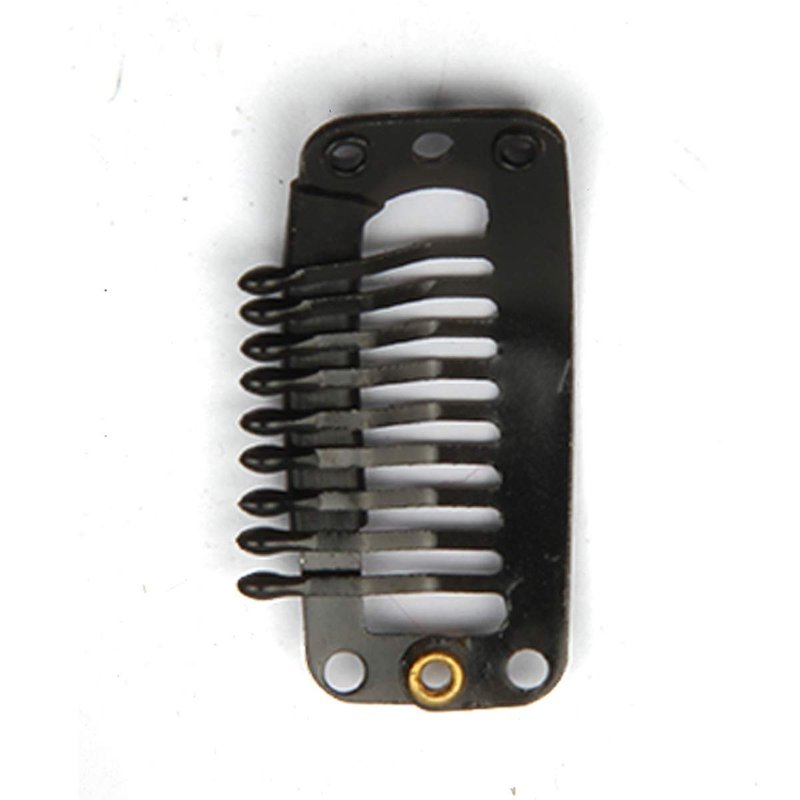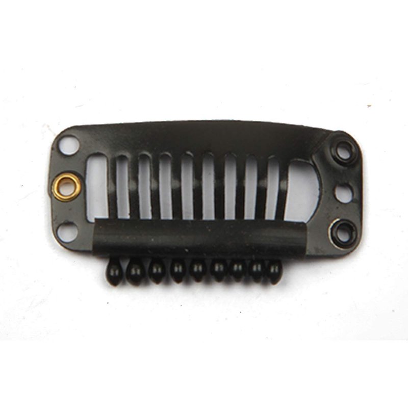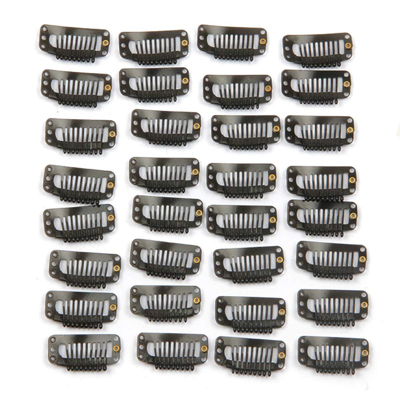 30pcs Hair Extension Clip Stainless Steel Snap Clips for Hair Extensions DIY Wig Combs Toupee Clips 9-teeth 32mm 1.2g/pc (Black)