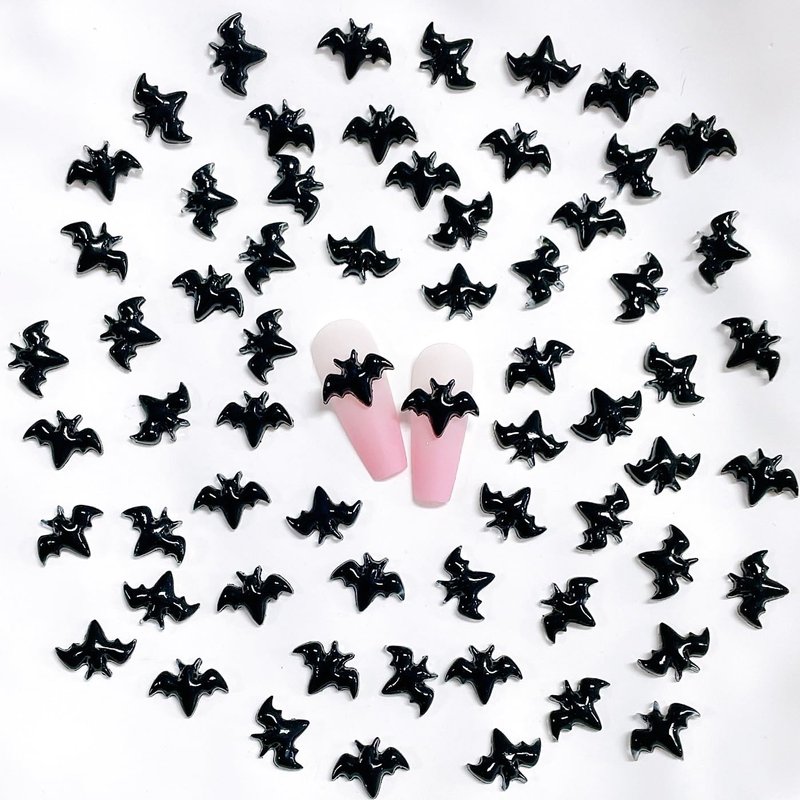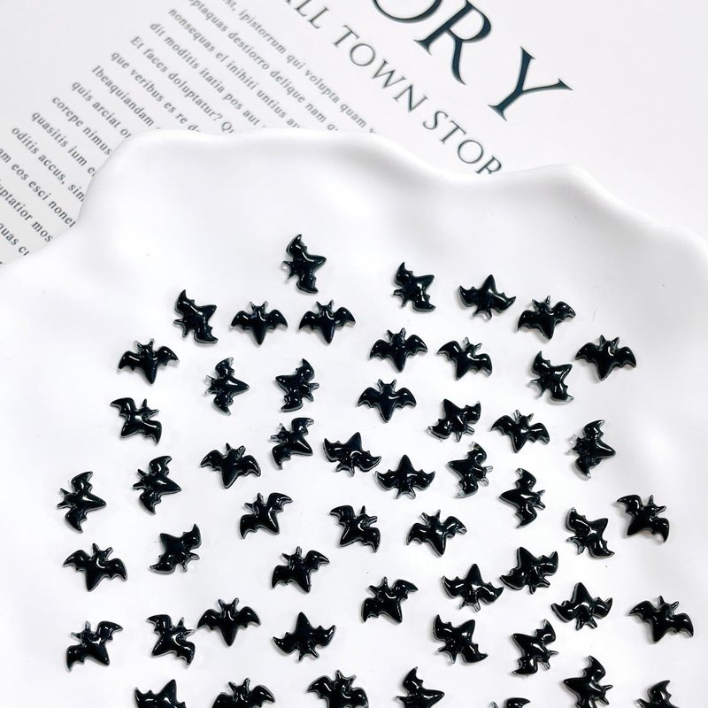 30Pcs Halloween Nail Charms 3D Resin Nail Art Charms Black Bat Nail Gems with Rhinestones Black Halloween Nail Charms for Acrylic Nails Supplies for DIY Manicure Nail Art Decorations