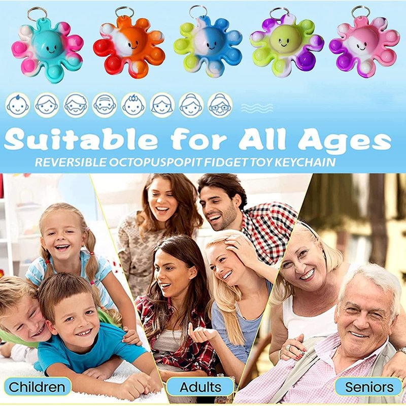 - 【Package Including】30 packs mini pop key chains(Octopus Shape) ,Random color to send. We guarantee that it is Perfect small keychain sensory tool,100% Hassle Free Money Back Guarantee