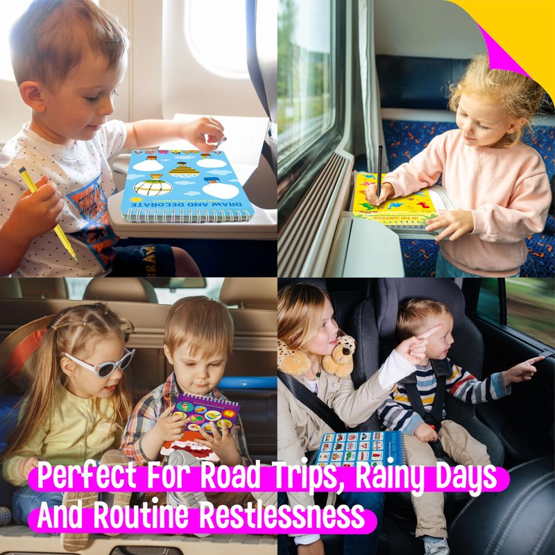 - Appropriate Size: The pad features a proper size (8.8” x 5.5”), neither too big nor too small, which will not occupy too much space. Its suitable size and lightweight makes it convenient to carry on your trips. Just pack it in your bag and take it out to kids while you are having a road trips or at airplane, it will keep your kids focused and stimulate their little brains. Kids can enjoy hours of playing games during the trips.