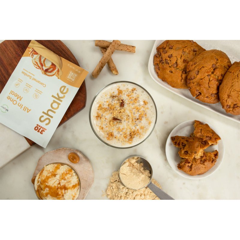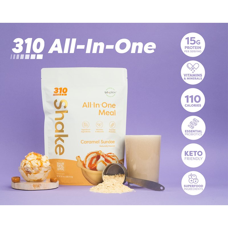 310 Nutrition - All In One Meal Replacement Shake - Superfood Blend with Fiber - Natural Sweeteners - Low Carb Shake, Keto & Paleo Friendly (Caramel Sundae, 14 Servings)