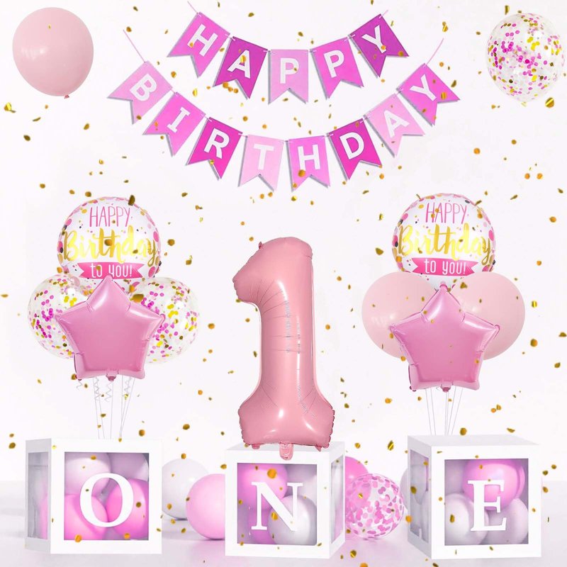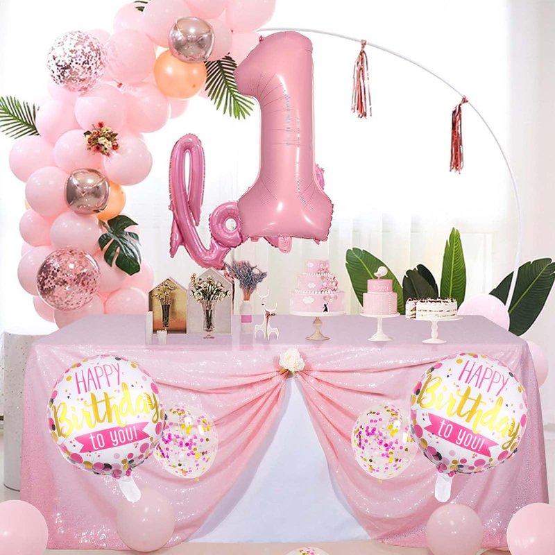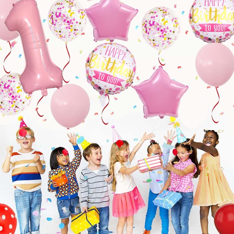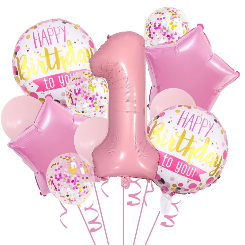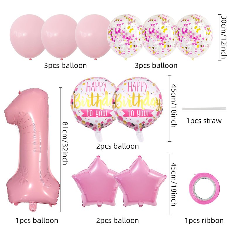 - What's Included: The package contains 1 pcs 32 inch foil number 1 balloon, 2 pcs 18 inch round balloons, 2 pcs pink star foil balloons, 3 pcs pink latex balloons, 3 pcs pink gold white confetti latex balloons