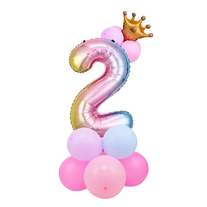 - Include: 1Pcs 32 Inch number 2 balloon, 12pcs rubber balloon 1pcs crown balloon, 1pcs straw, 1pcs coil,2 glue dots