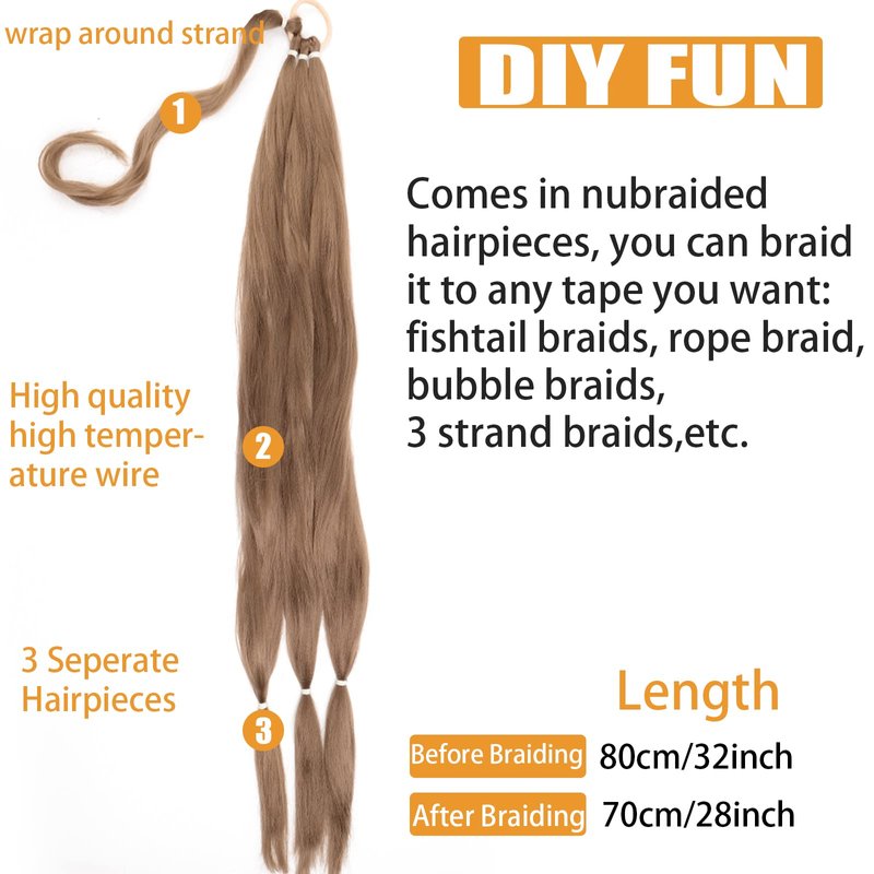 - 【DIY New Style】 You will receive a non-braided braid consisting of three long straight strands and one short strand, and you can DIY your own braided style. Braids, bubble braids, fishbone braids. Easy to don and operate. In less than a minute, give you a perfect morning.