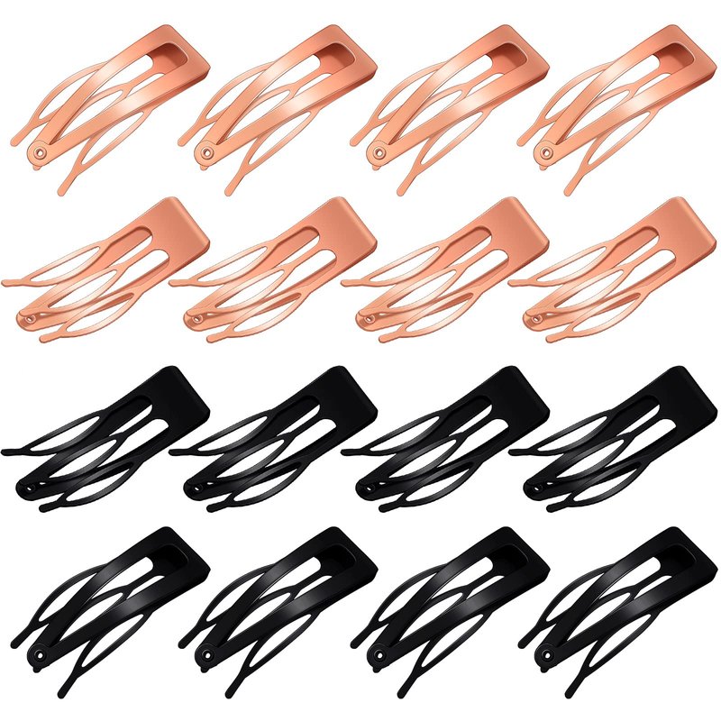 32 Pieces Snap Hair Clips for Women, 3 Prong Clips for Hair, Double Grip Hair Clips Metal Snap Clips, Hair Comb Clips Snap Hair Barrettes for Women Girls Hair Accessories (Rose Gold, Black)