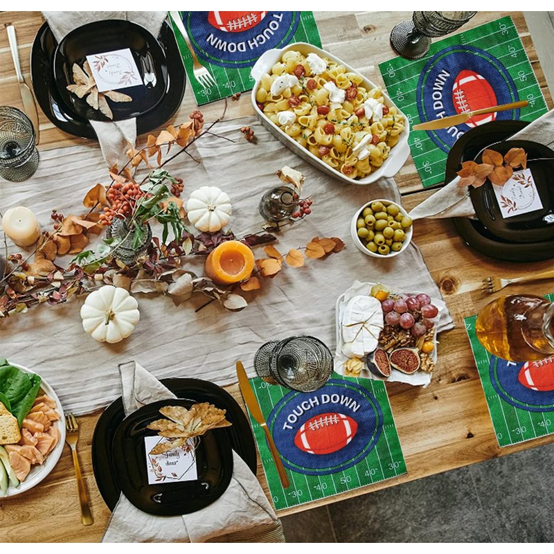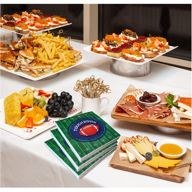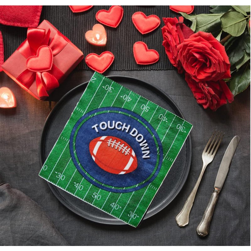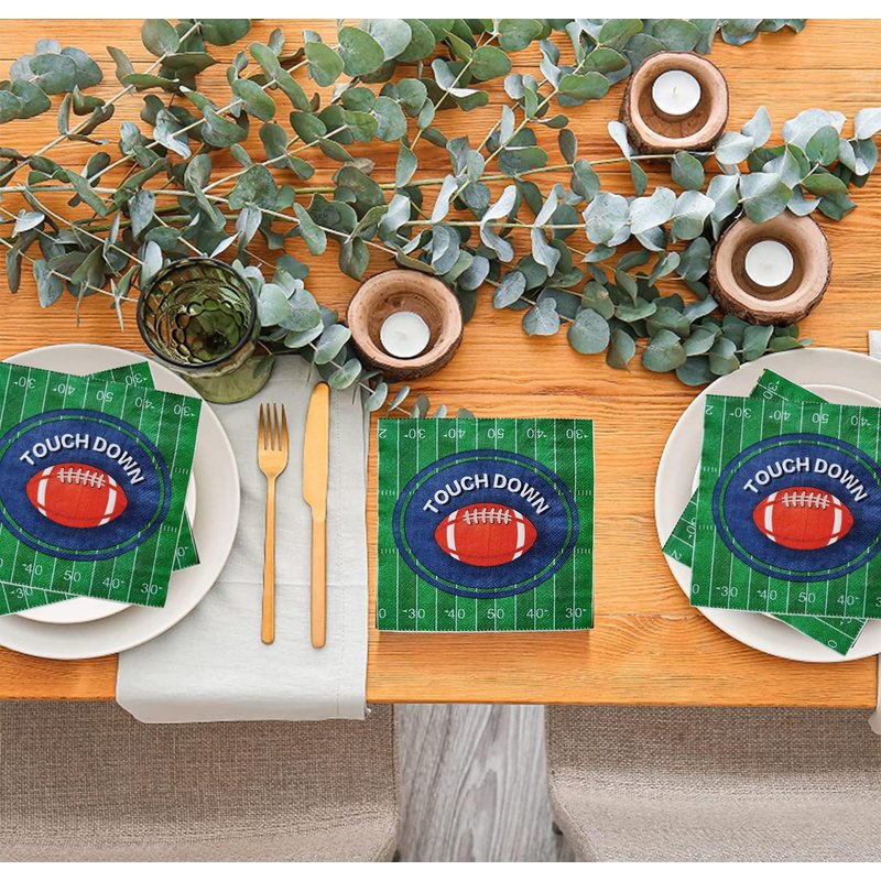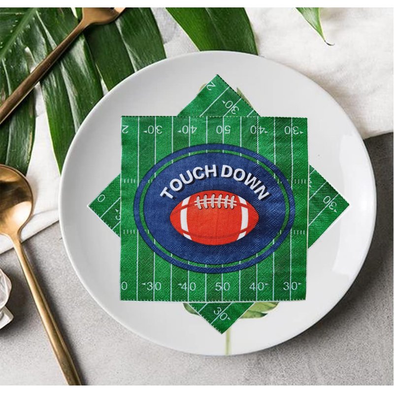 - 3. Application: Put This Football Napkins Place near the self-serve buffet table, cake table, sweets and treats table, hot chocolate, coffee and tea or at each table using a napkin holder or napkin dispenser. Complete the look with matching birthday party tableware.These party Napkins will make your table settings look fantastic and all your guests will be happy.
