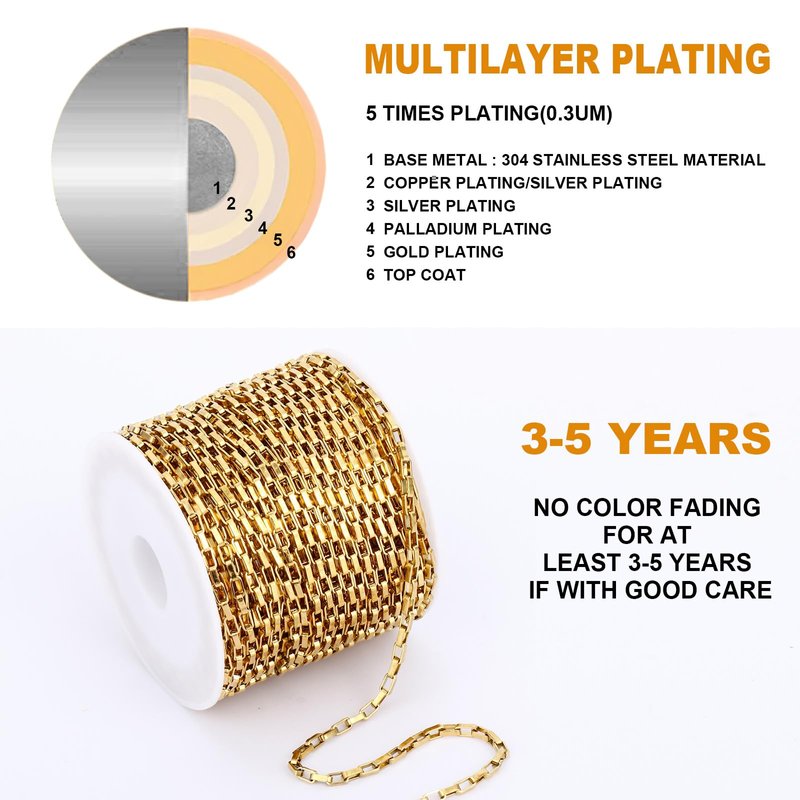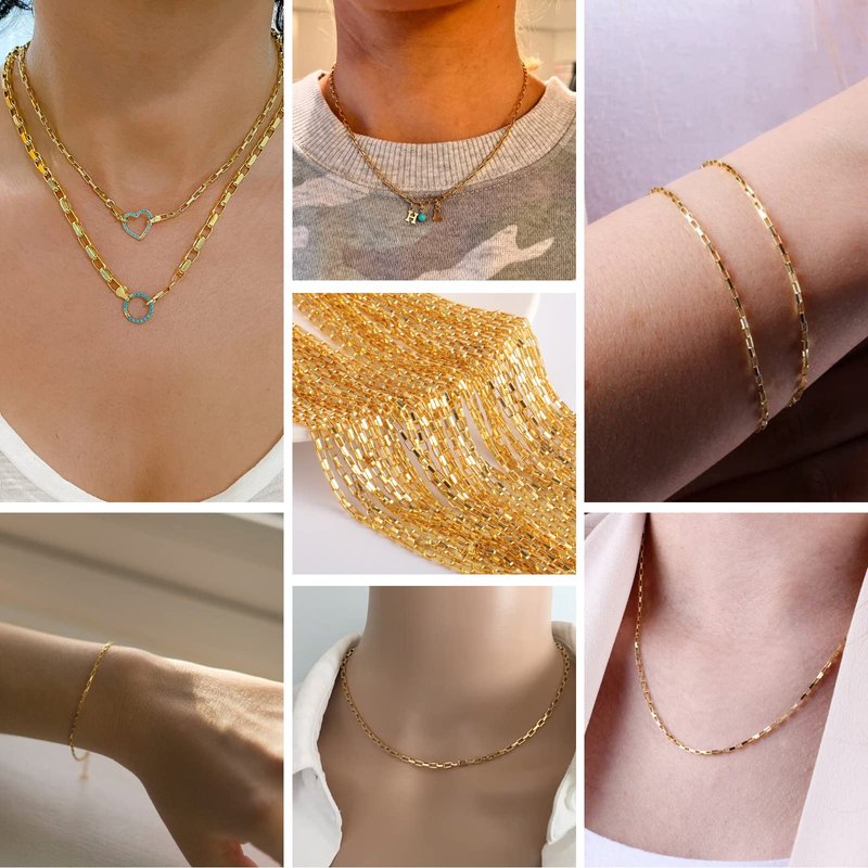 - 【18K Gold Stainless Steel Chain】The box chain made of high quality 304 stainless steel with 18k gold PVD plated material. The box link chain is durable, nickel free and lead-free.