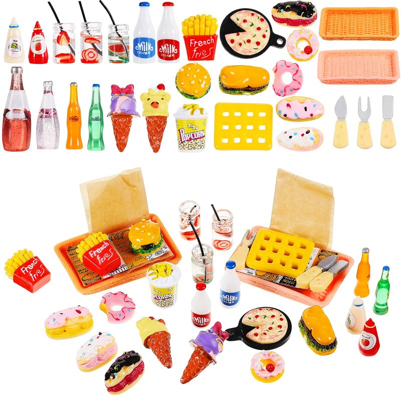 33 Pieces Miniature Fast Food Toy Miniature Pretend Food Play Toys Dollhouse Accessories Hamburger Fries Cake Milk Doll Food Kitchen Accessory Toy for Kids Party Accessory Christmas Restaurant Decor