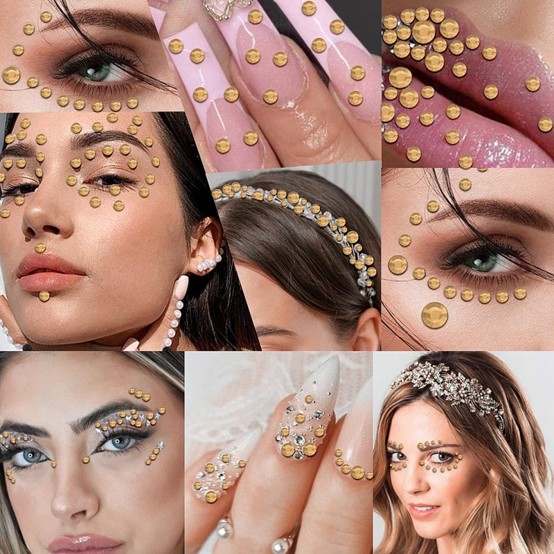 - 💎[ Assorted Sizes ] Come with 5 sheets face gems stick on, 3555 pieces hair gems in 5 sizes, including 1325pcs of 3mm, 840pcs of 4mm, 646pcs of 5mm, 504pcs of 6mm, 240pcs of 8mm, sufficient quantity and assorted sizes can meet your various makeup and craft projects needs.