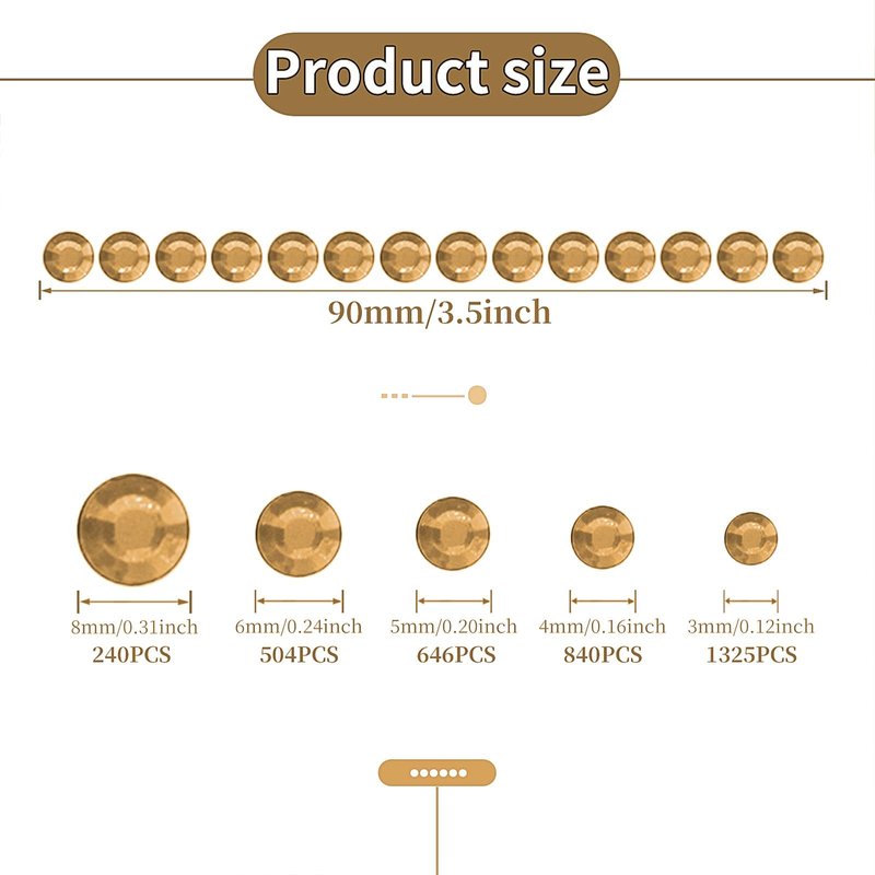 3555PCS Rhinestone Stickers for Crafts, Self Adhesive Gem Stickers 3/4/5/6/8 MM Face Jewels Stick on Bling Pearls for Face Eye Nail Hair Body Makeup Crafts DIY Scrapbooking Embellishments (Champagne)