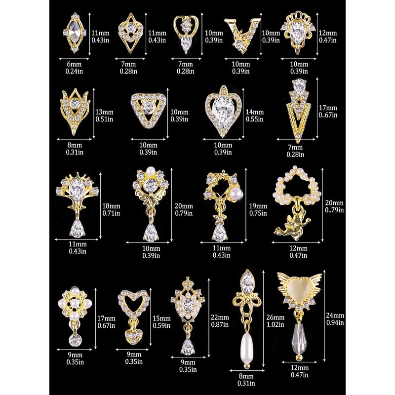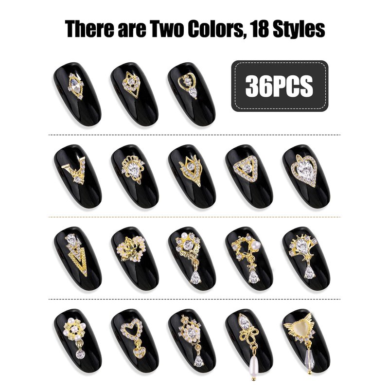 - 💅 Package Include: You will receive 36 pieces of different shapes nail art rhinestones in 2 colors, such as heart, 3D dangle, letter, quadrilateral, triangle, pearl rhinestone and other charms, enough quantities and different styles can meet your various needs to create beautiful nails or make jewelry crafts art.