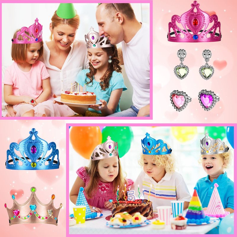 - Cute and Charming Accessories: princess tiaras for party favors are approx. 8-9 inches, rings are approx. 2.5 x 2.5 cm/ 0.98 x 0.98 inch, earrings are approx. 4.5 x 2 cm/ 1.77 x 0.79 inches, you can adjust the size according to your preference and need, they can make you cute and charming