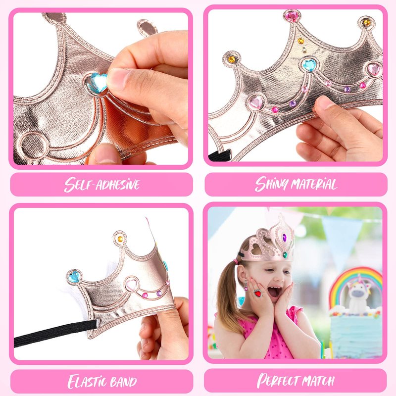 - Sturdy Materials: glitter princess DIY crown is made of quality foam, gemstone stickers made of acrylic rhinestones, rings and earrings made of plastic and acrylic rhinestones, strong and wear resistant, not easy to break or deform, smooth and flat edge, will not scratch your hands and head easily