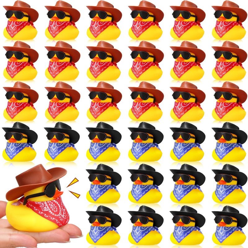 36 Set Cowboy Rubber Duck Mini Yellow Duckies Bath Party Toy Tiny Ducks Bathtub Toy with Cowboy Hat Paisley Bandanas Sunglasses for Summer Baby Shower Birthday Swimming Party (Vintage Style)