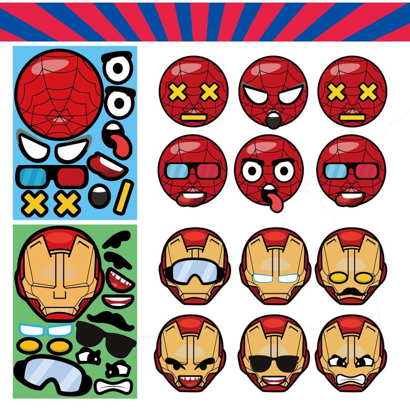 - 🕷 Spidey & Friends Make a Face Stickers: These cartoon characters stickers are vibrantly printed, with a film covering the surface, making them thick, glossy, and waterproof. They are colorfast and safe with no odd smell. Kids can create their own favorite hero characters on various smooth and flat surfaces.